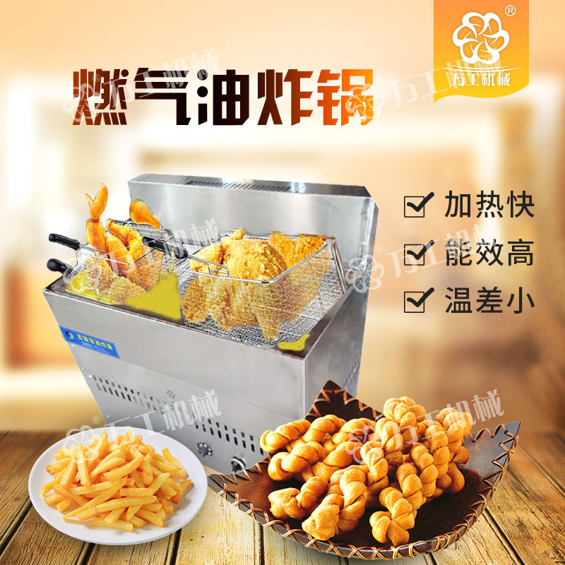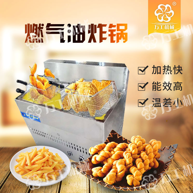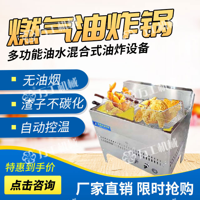 寶雞萬工機(jī)械生產(chǎn)的燃?xì)庥驼ㄥ伿且环N無煙型、多功能、油水混合式油炸設(shè)備,該設(shè)備采取從油層中部加熱的方式,控制上下油層的溫度,有效緩解炸油的氧化程度,抑制酸介質(zhì)升高,在油炸過程中自動(dòng)過濾殘查、自動(dòng)控溫,從而延長了機(jī)器的使用壽命。鍋體材質(zhì)為全不銹鋼,能效比高、清潔環(huán)保無污染,便于清渣,使用成本低,操作簡單、安全。